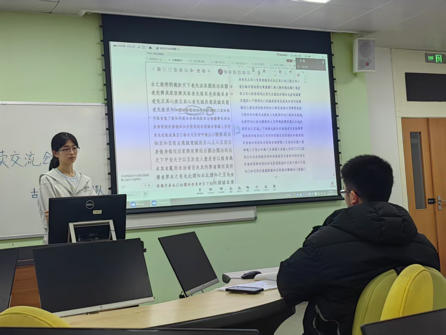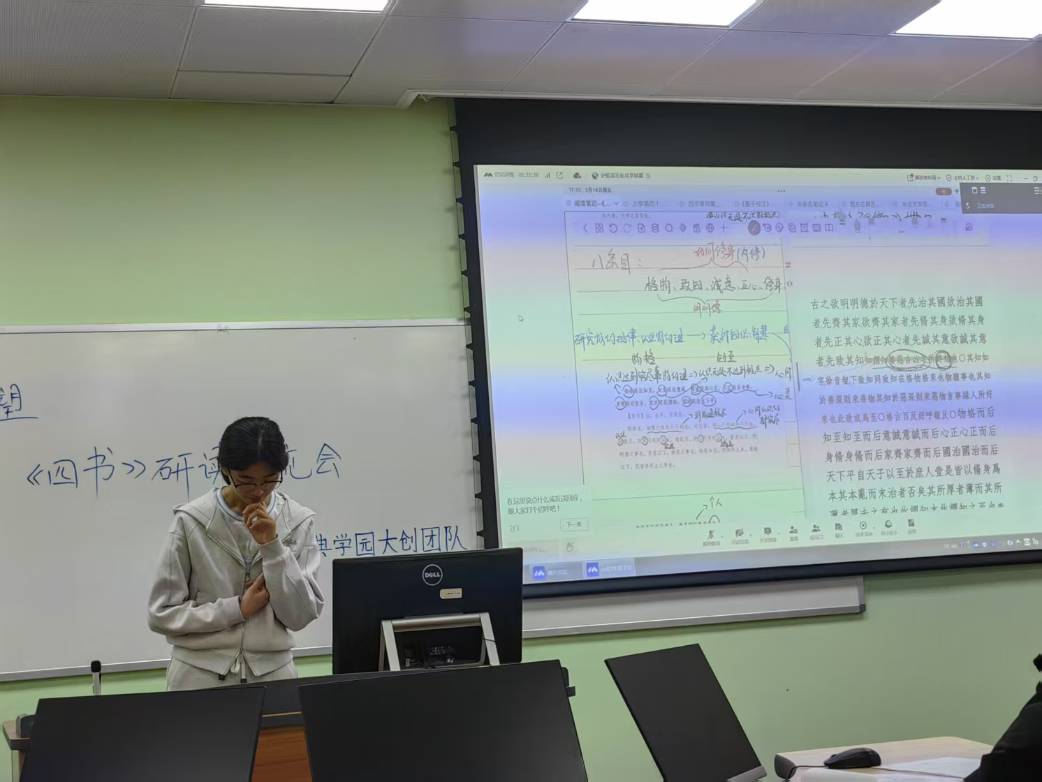 william威廉英国官网中国古典学园大创团队举办了“四书读书会”,本次读书会聚焦于《大学》第42章的研读与探讨。第42章以孔子为例,阐述了向圣贤学习的重要性,强调了通过不断学习提升自身修养,最终达到与天地匹敌的境界。同学们在活动中深入交流,分享对经典的理解与感悟,探讨如何将“以圣贤为楷模”的思想融入个人成长与学业发展。此次读书会不仅加深了同学们对儒家经典的领悟,也为传承和弘扬中华优秀传统文化提供了新的视角与思考。